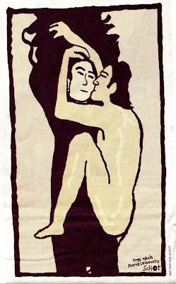 El 22 de enero de 1981, la revista Rolling Stone publicaba en su portada una foto de Annie Leibovitz en la que aparecían John Lennon y Yoko Ono. Seis horas después de que la foto fuera tomada, el 8 de diciembre de 1980, el músico fue asesinado por Mark Chapman, en la entrada del edificio Dakota. Esta fotografía acabaría convertiéndose en una de las más célebres de su autora. Lo que quizá no sea tan conocido es que si acabó publicándose fue por la insistencia y el interés de Yoko Ono, quien la consideraba "la mejor y más bella de nosotros juntos". El caso es que, en el 2005, fue elegida la mejor instantánea de los últimos cuarenta años por la Asociación Nacional de Editores de Prensa Norteamericanos. Después se ha copiado de manera burda, y casta, como puede verse. En el remedo se pierden sus mejores singularidades: el hombre desnudo, en posición fetal, sobre la mujer vestida, blanco sobre negro, el beso en el rostro, la manera en que le coge el pelo o le rodea la cabeza, y la mezcla de razas. En síntesis, frente a la tensión erótica, el edulcoramiento del quiero y no puedo. Hoy, domingo, sin embargo, Schot la remeda con talento en el Die Welt.